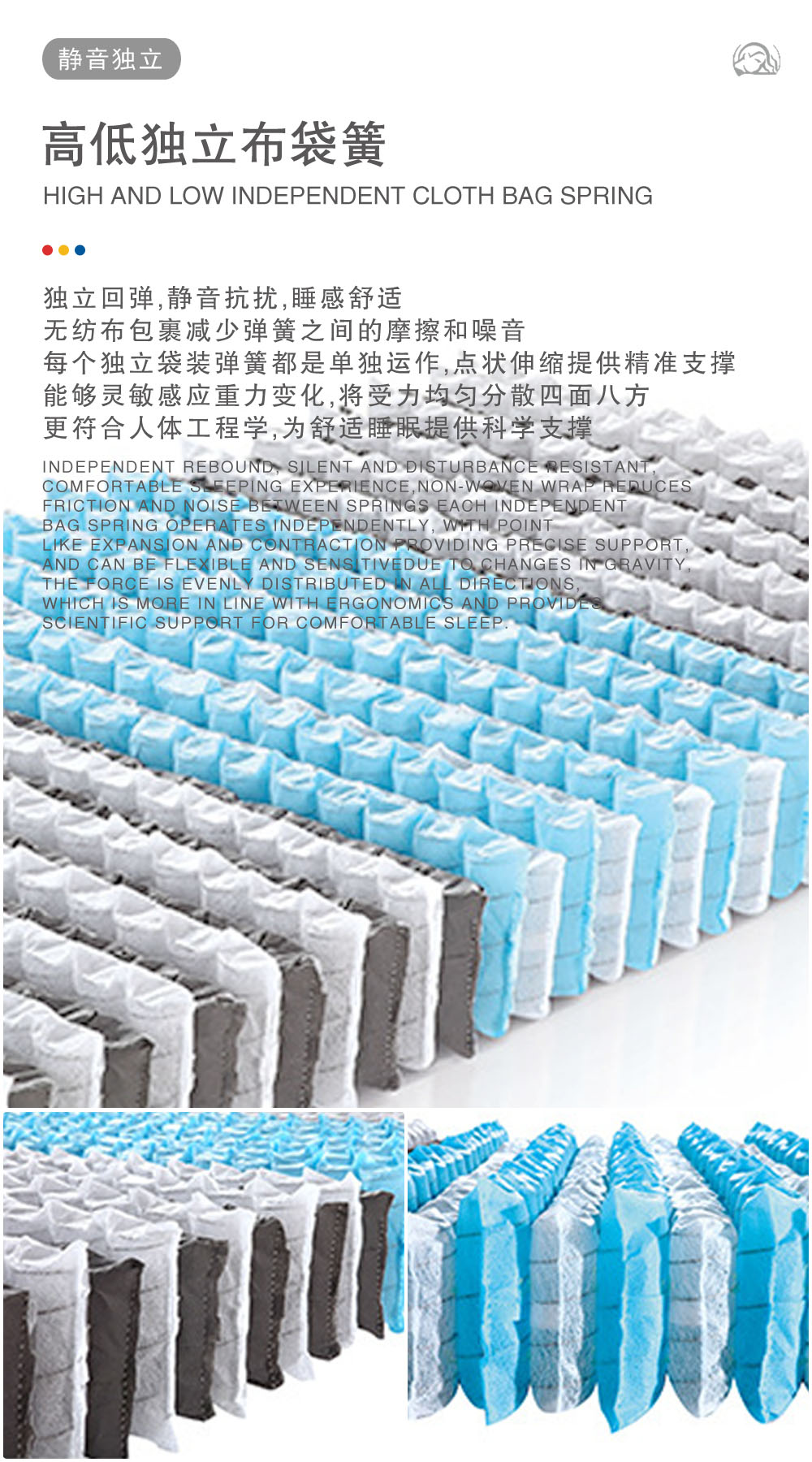 填充物: 超羽棉 ,生物基高回弹棉 ,纳米竹炭海绵 ,纯棉白衬布 ,3D高分子 ,可视六角网眼布 ,加强网布 ,高低独立布袋簧 ,硬质棉下 ,无纺布下 ,高密海绵下Superfeather cotton Bio-based high rebound cotton Nano bamboo charcoal sponge Pure cotton white interlining 3D Polymer Visual hexagon mesh fabrics Strengthened mesh fabrics High and low independent bag spring Solid cotton felt Non-woven fabrics bottom High-density sponge