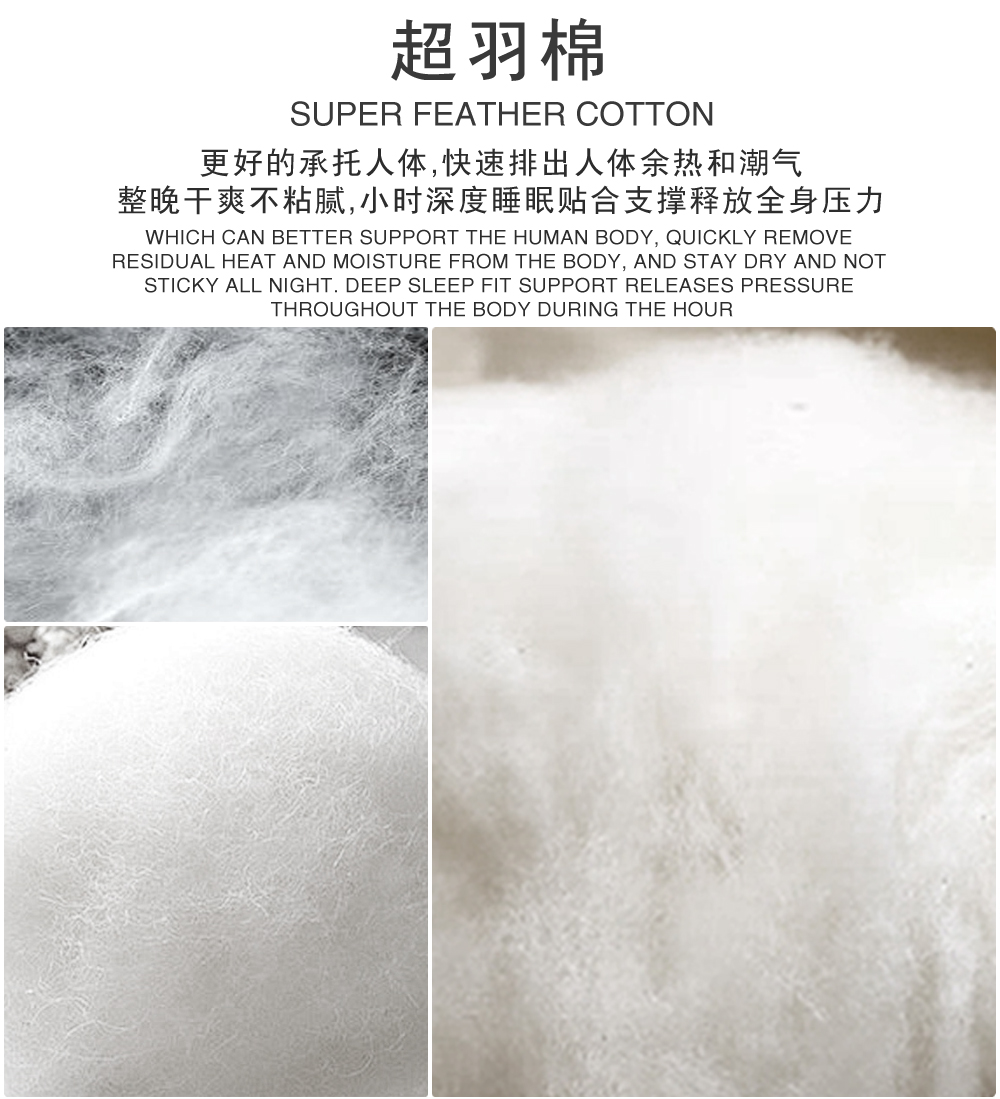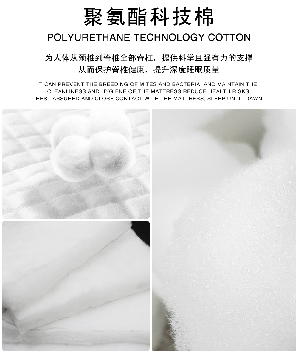 填充物: 超羽棉 ,聚氨酯科技棉 ,高密海绵上 ,纯棉白布内衬 ,羊毛舒适棉 ,可视六角网眼布 ,加强网布 ,七区独立袋装弹簧 ,硬质棉 ,无纺布下 ,高密海绵下 ,纯棉白衬布Superfeather cotton Polyurethane technical cotton High-density sponge , Wool comfort cotton Visual hexagon mesh fabrics Strengthened mesh fabrics 7 zone pocket springs Solid cotton felt Non-woven fabrics bottom High-density sponge Pure cotton white interlining