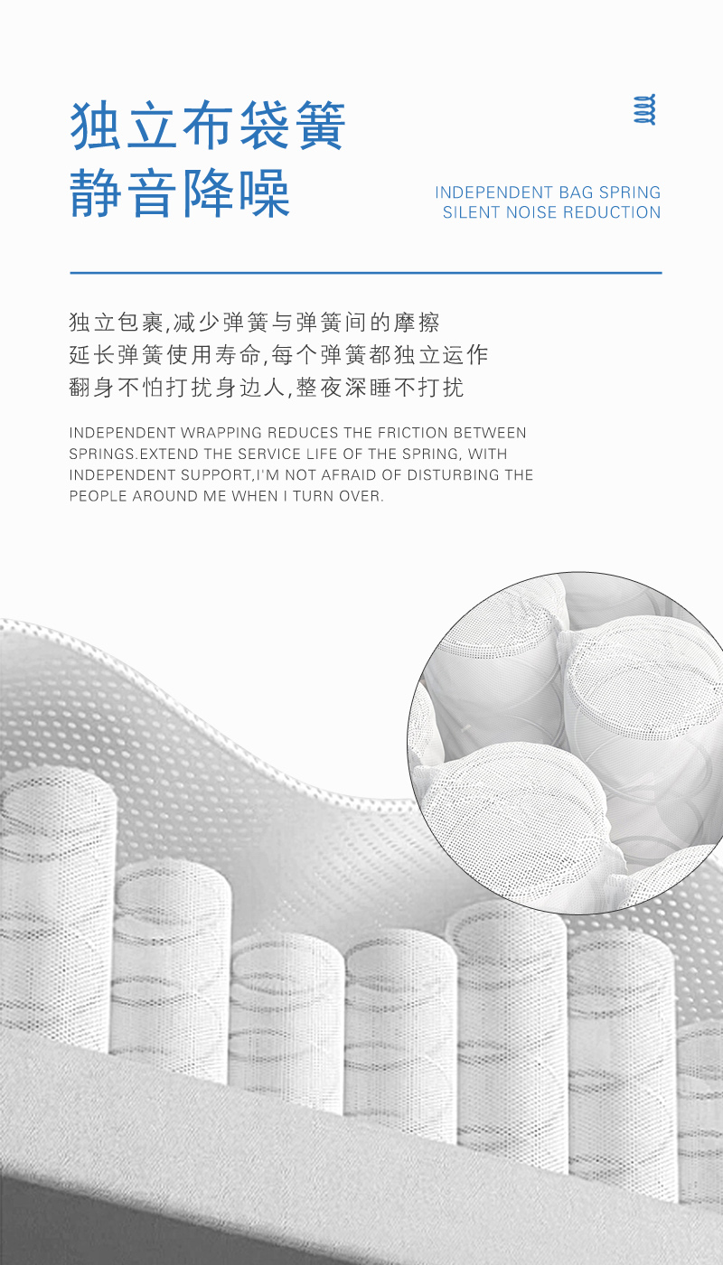 填充物: 超羽棉 ,高密度海绵上 ,无纺布上 ,硬质棉上 ,独立布袋簧 ,硬质棉下 ,无纺布下 ,高密海绵下Superfeather cotton High density sponge Non-woven fabrics top Hard cotton top Pocket springs Solid cotton felt Non-woven fabrics bottom High-density sponge
